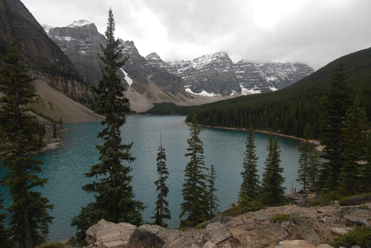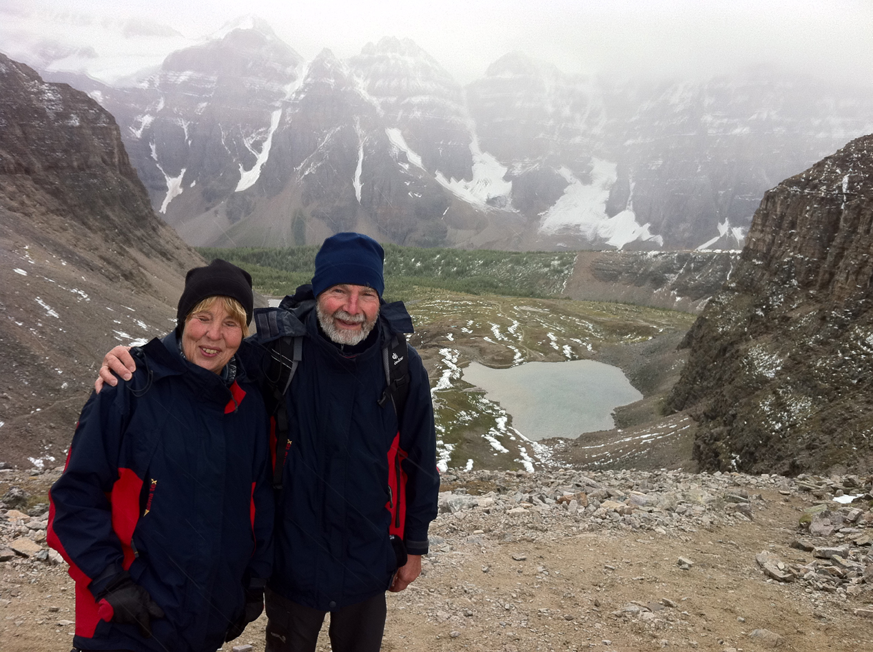 left) and our path up with the Ten Peaks in the background (photo on right).