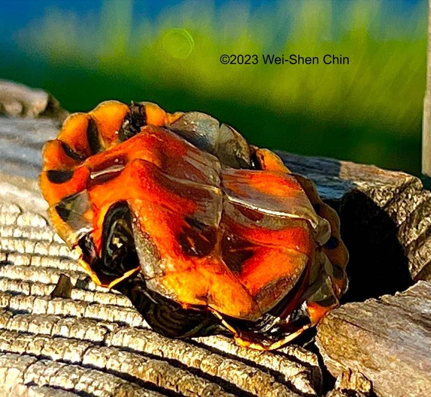 the innards of this small turtle and then leave the empty shell behind.