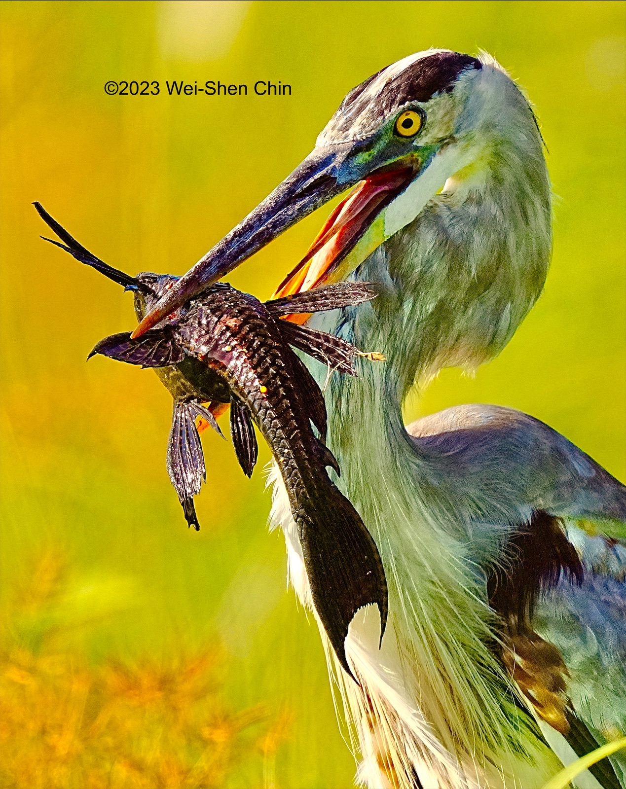 (without success) to position his catfish catch correctly so that he could