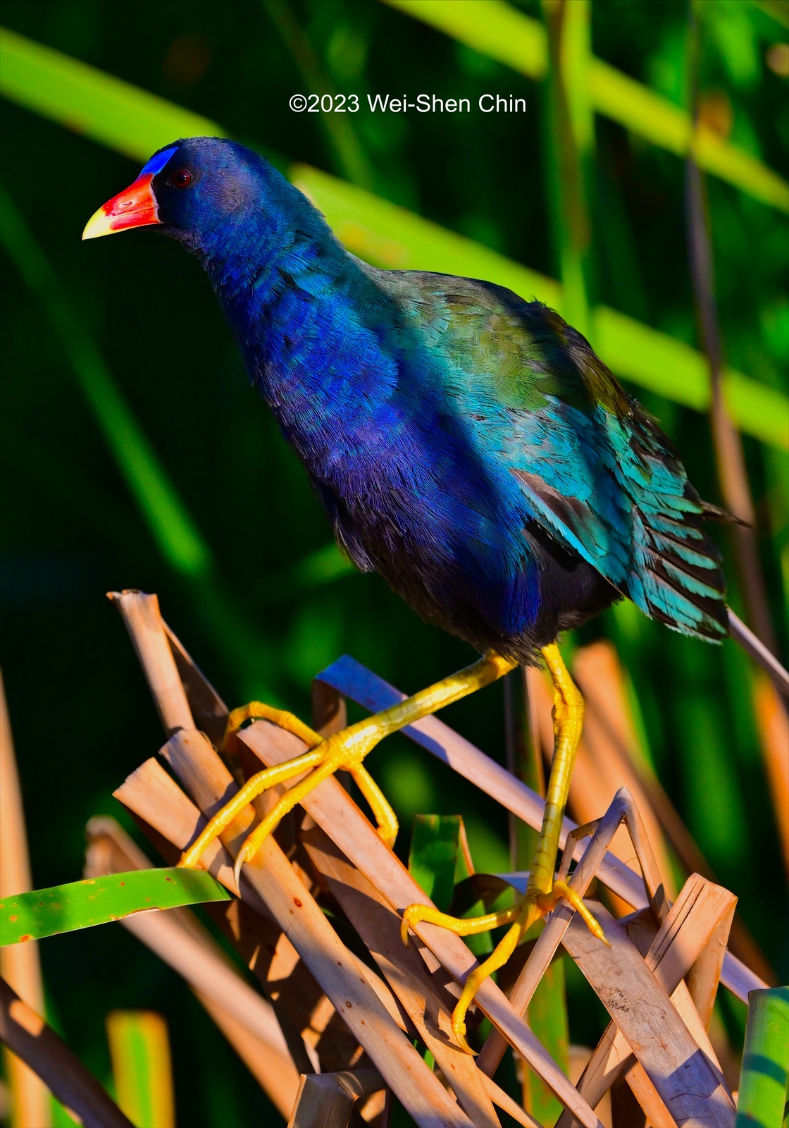 we were walking off the pier we saw a purple gallinule