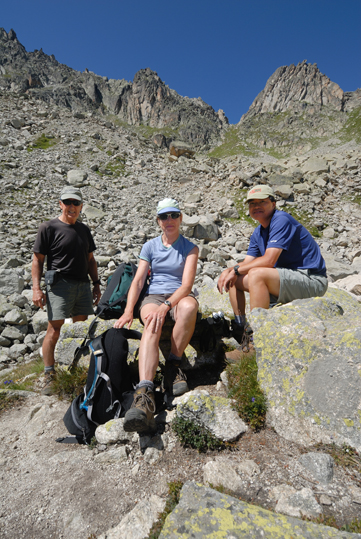 Mike led the Bovine route group and Stéphane led the Val d’Arpette group. Ironically, the Val d'Arpette hike passed directly through a herd of dairy cows before heading up into the valley, which turned out to be a bit intimidating because these cows were loose (all of the cows we had seen previously were always behind electrical wire). These cows also had horns and didn’t mind butting heads with each other, but fortunately they didn’t seem to be bothered by us. Stéphane pointed out how our route would follow the valley to the right, then head up steeply to the notch.