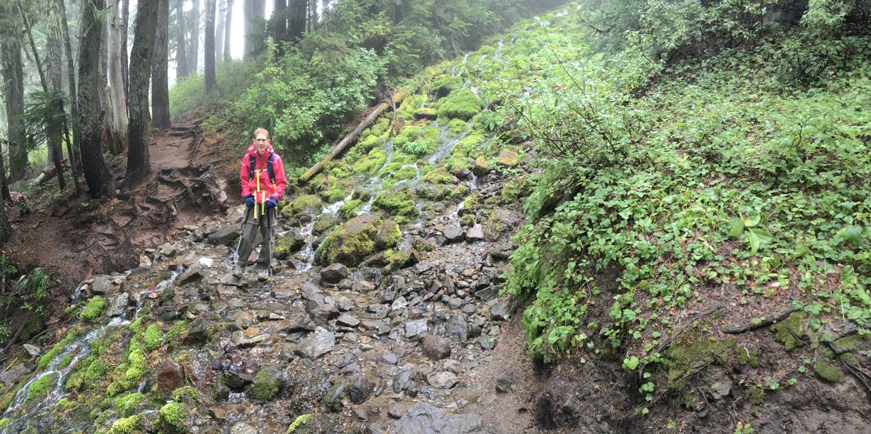 and cloudy the day after a hard rain. The beginning of the hike coincided with